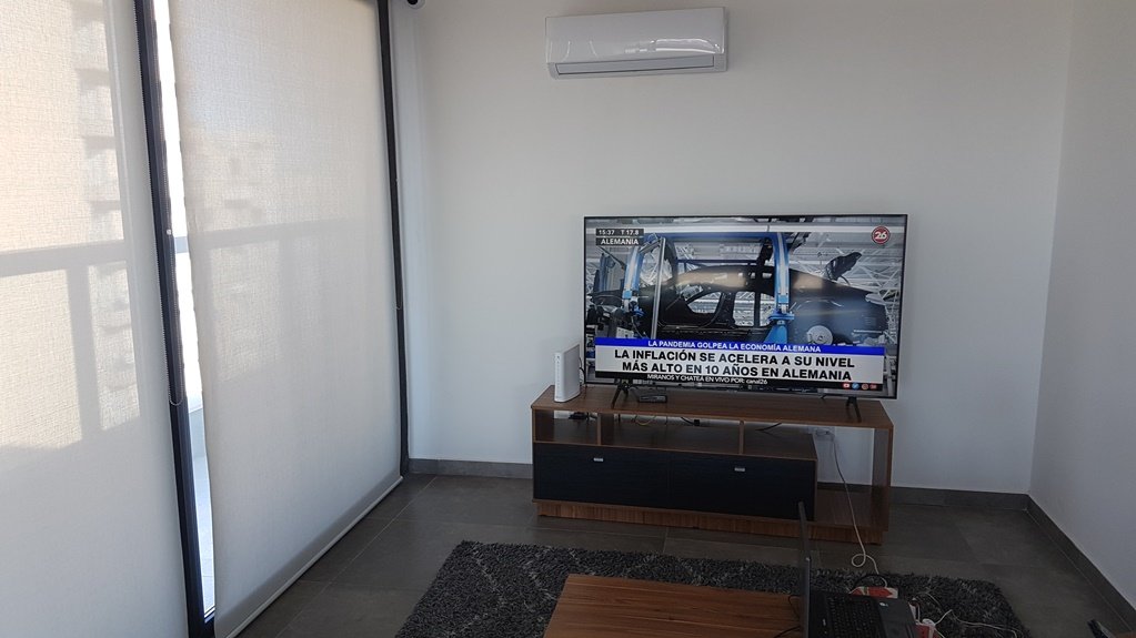 Departamento amplio, luminoso y de muy buenas terminaciones, posee Aire Acondicionado frio Calor marca Electra, ventanal con doble vidrio y cierre hermético, kitchenette con muebles bajo y sobre mesada, anafe vitro cerámico, campana y horno eléctrico de acero inoxidable. Baño completo de muy buen tamaño con sanitarios de primera marca y griferías de cierre cerámico.