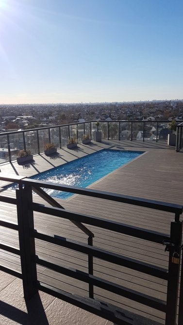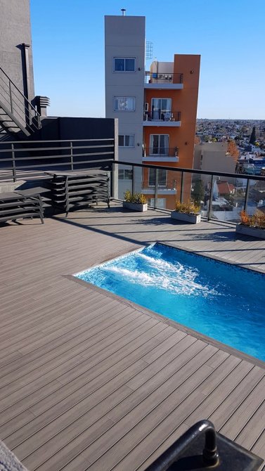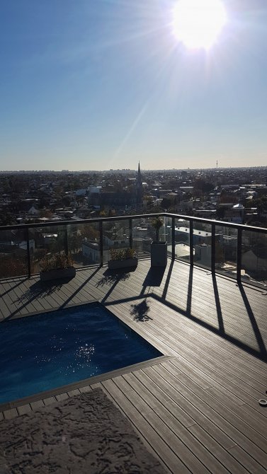 El edificio de concepto moderno posee un amplio hall de ingreso equipado con living de recepción, dos ascensores de última generación, el área de servicios se encuentra en el piso 11 y dispone de Laundry con lavadoras y secadoras, solárium, amplia piscina con deck y vistas panorámicas, Salón de Usos Múltiples totalmente equipado y decorado con sector de TV y wi fi y terraza libre.