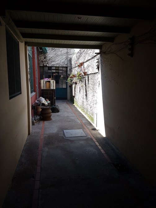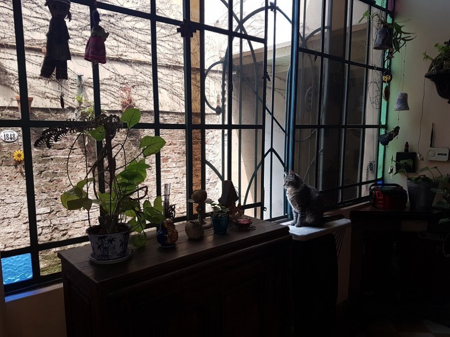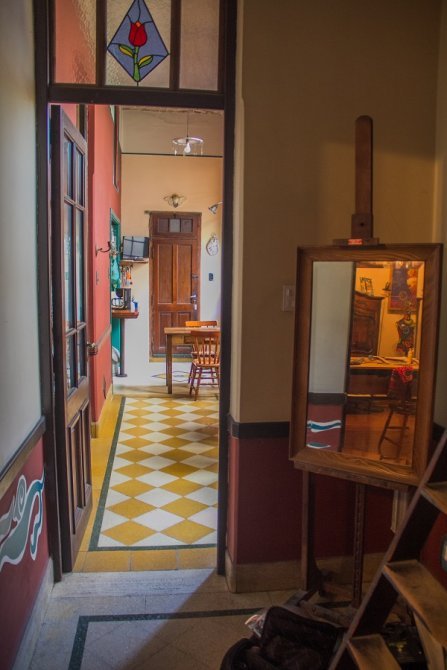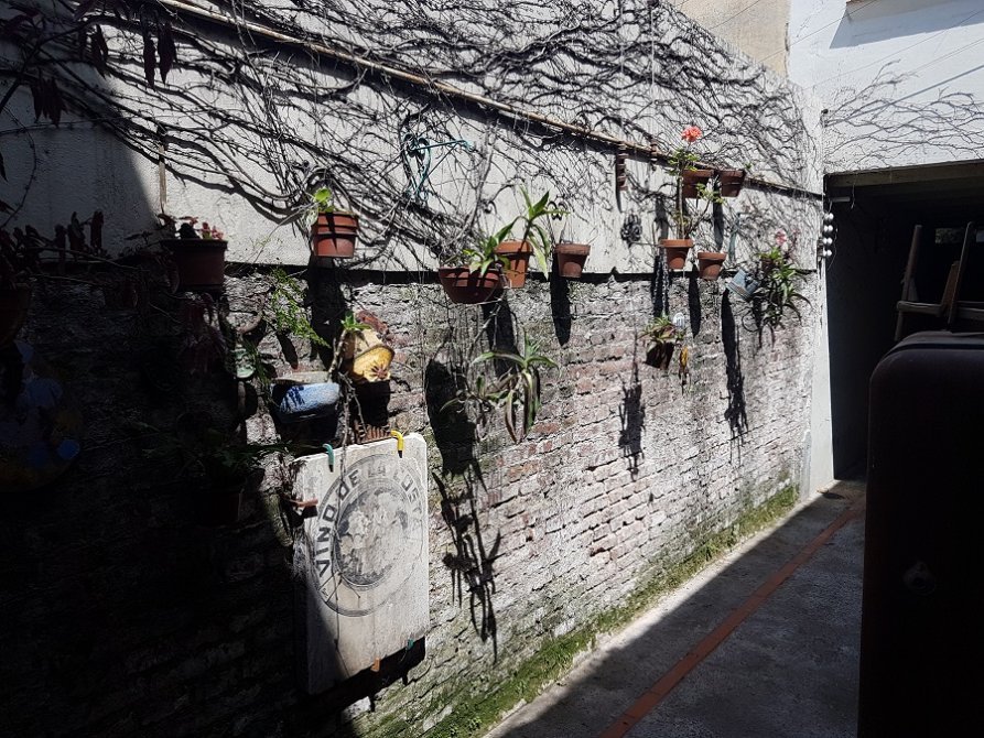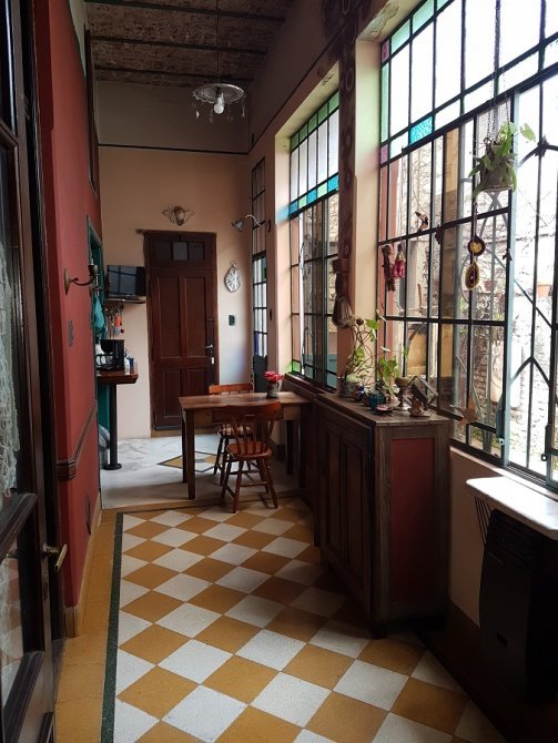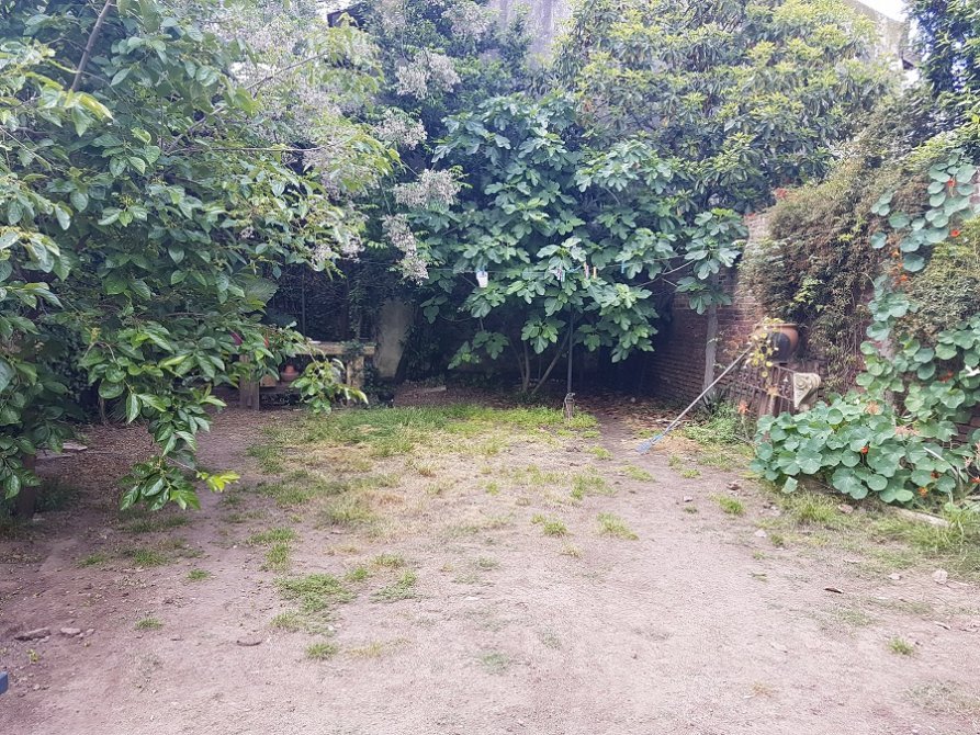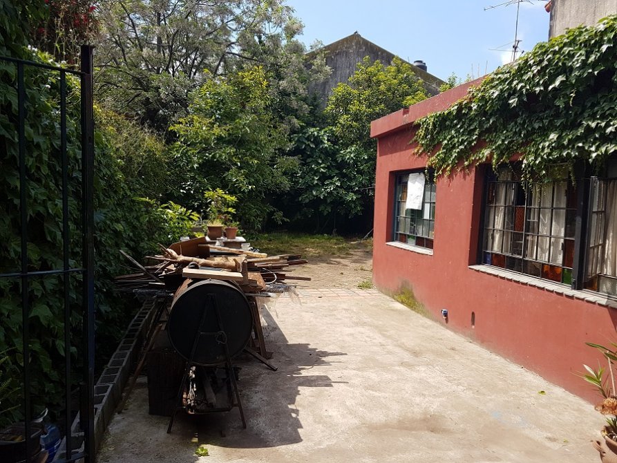 Inmueble sobre lote irregular que resulta de la unificación de 2 lotes uno al frente y el otro al lateral y contrafrente, el mismo se compone de: casa al frente de 3 ambientes, con orientación al sur, de estilo antiguo, construida sobre línea municipal y sobre el lado oeste del lote, se accede a un hall distribuidor con ingreso al amplio living, luego galería cubierta y comedor diario, que distribuye a un dormitorio en suitte y a la cocina completa con mueble bajo mesada y amplia alacena.En el frente desde el hall recibidor se accede por escalera, a una boardilla ó segundo dormitorio que queda por arriba del garaje pasante para varios autos, seguido a esta construcción con acceso desde la galería o por el garaje encontramos un amplio galpón con techos a dos aguas con cabreadas de pinotea y con una altura superior a los 4 metros donde funciona un taller de artista plástico, con entrepiso, baño completo y lavadero, al final de este, sobre el lateral al este encontramos un lote aledaño adosado a la propiedad en cuestión, que posee un departamento mono ambiente y terreno libre.