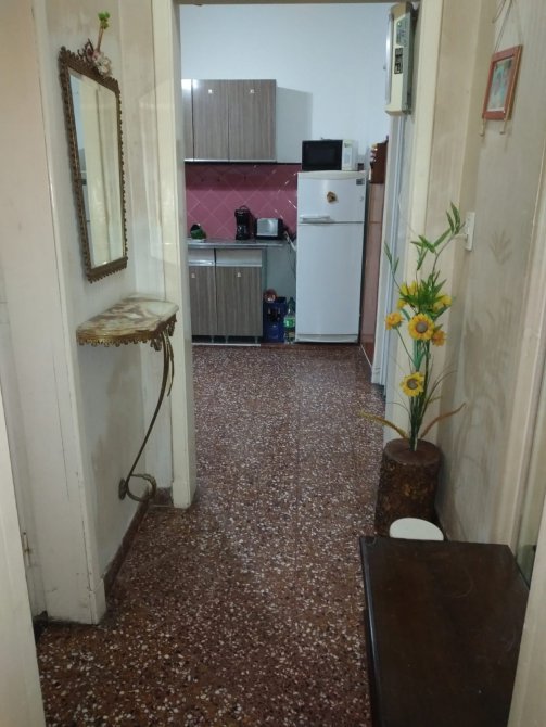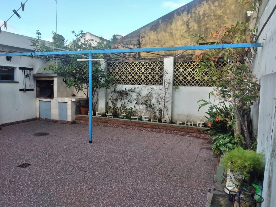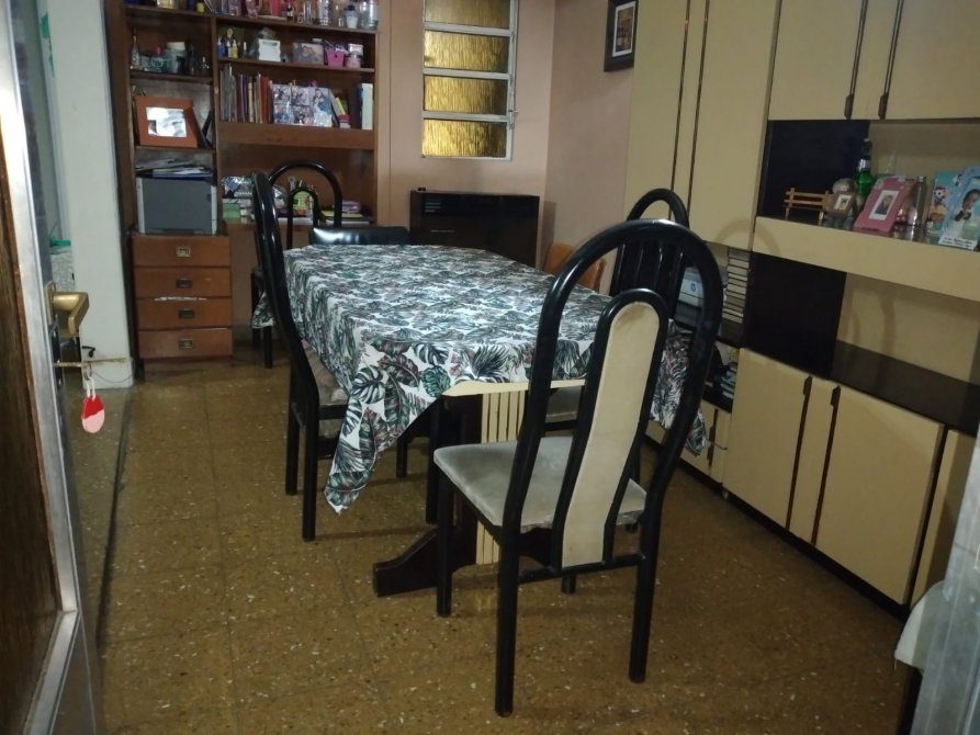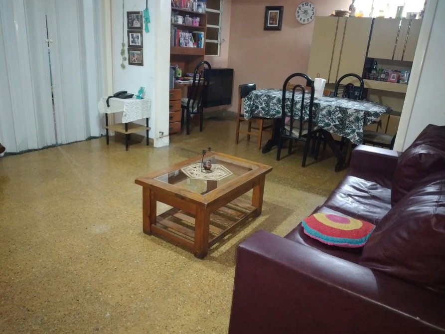 Ingreso a living, comedor, cocina completa con muebles bajo y sobre mesada, comedor diario, hall de distribución, baño completo, 2 dormitorios con pisos de madera uno de ellos con placard, cuarto de enceres y una segunda cocina. Patio con parrilla.