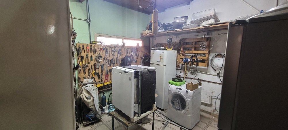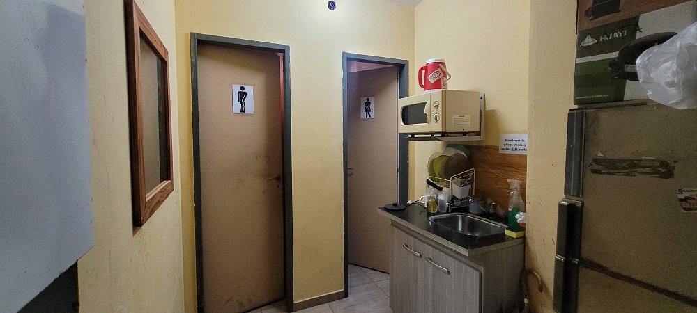En medio de los 2 galpones se encuentra un departamento monoambiente con techo de loza.