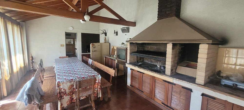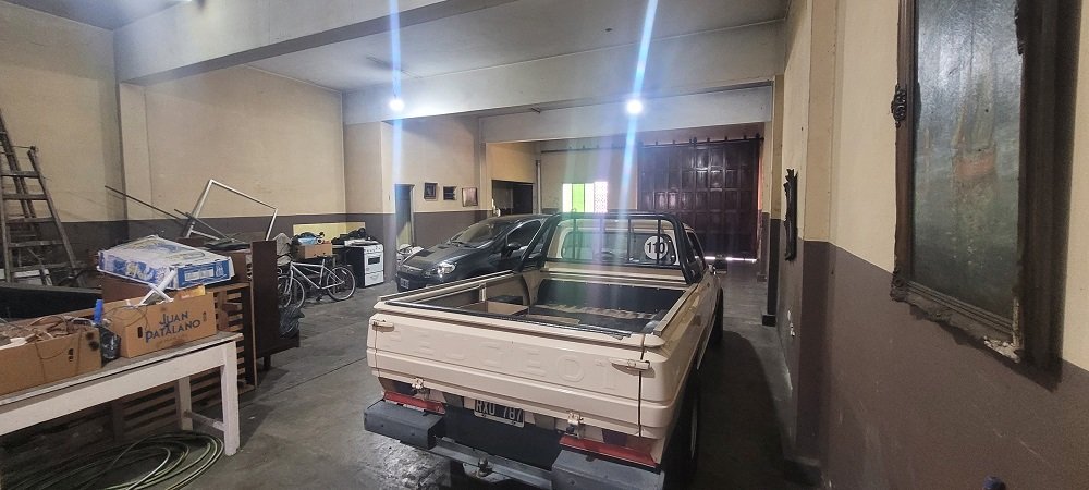 Galpón: de excelente construcción, piso de hormigón para el ingreso de vehículos de gran porte y techo de loza con bigas reforzadas preparado para construir una planta superior, con ingreso por portón de madera de 3 mts de altura, posee escalera de hormigón hacia la terraza, un baño y salida al parque.