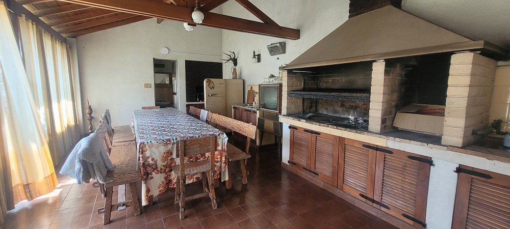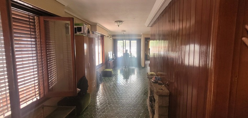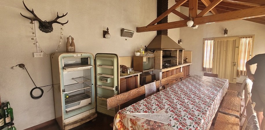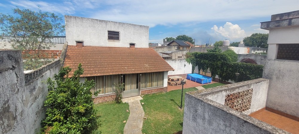 Galpón: de excelente construcción, piso de hormigón para el ingreso de vehículos de gran porte y techo de loza con bigas reforzadas preparado para construir una planta superior, con ingreso por portón de madera de 3 mts de altura, posee escalera de hormigón hacia la terraza, un baño y salida al parque.