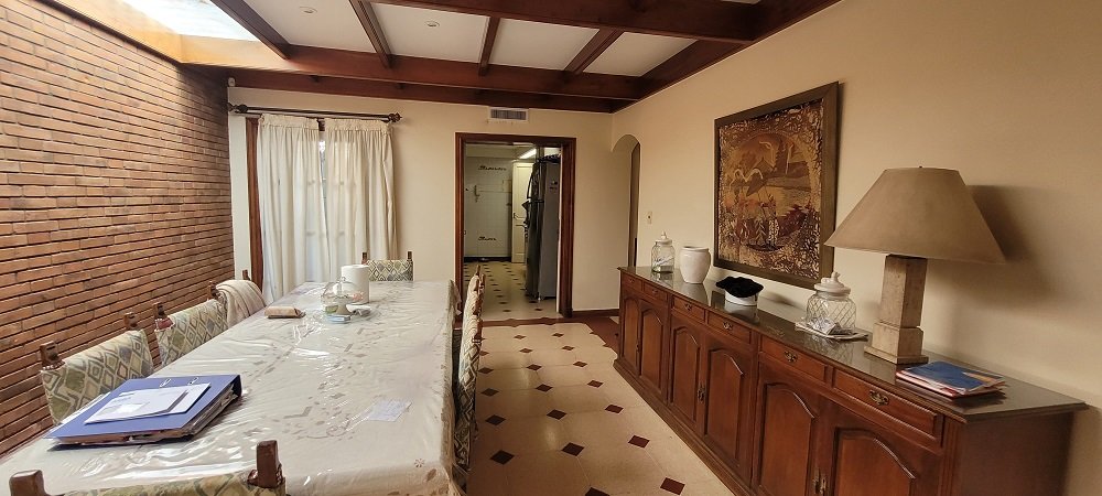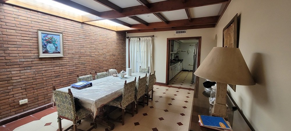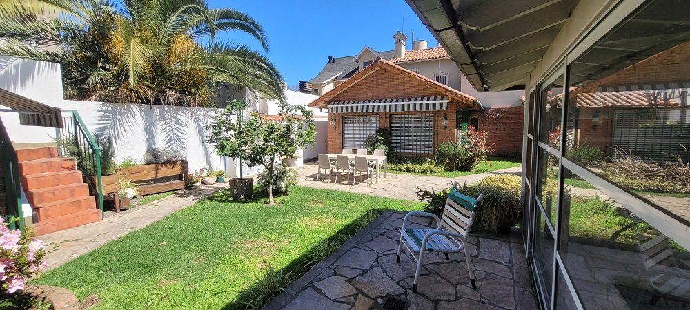 Sobre un lote de 623 m2 se compone de jardín al frente con ingreso para varios autos, galería, ingreso a un hall de recepción y distribución, en su planta baja encontramos un amplio Living doble con hogar a leña y grandes ventanales hacia el frente y laterales con vistas al jardín, cocina completa con muebles bajo y sobre mesada con amplios espacios de guardado, comedor diario con espacio para mesa de 10 personas, un segundo living o family con ventanales hacia el parque trasero, también encontramos un escritorio o dormitorio con un baño completo, salida al garaje cubierto y pasante para 2 vehículos más.