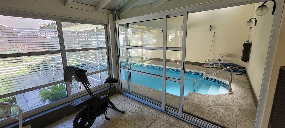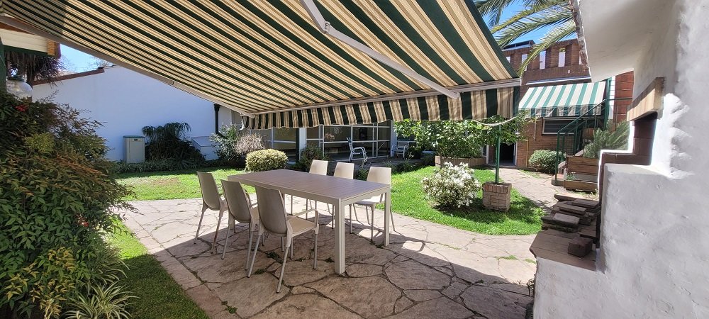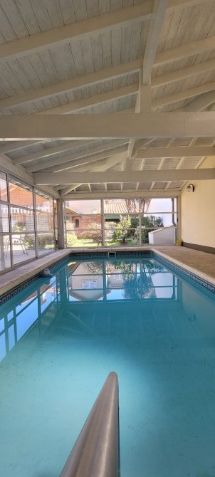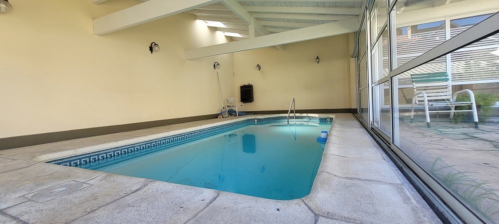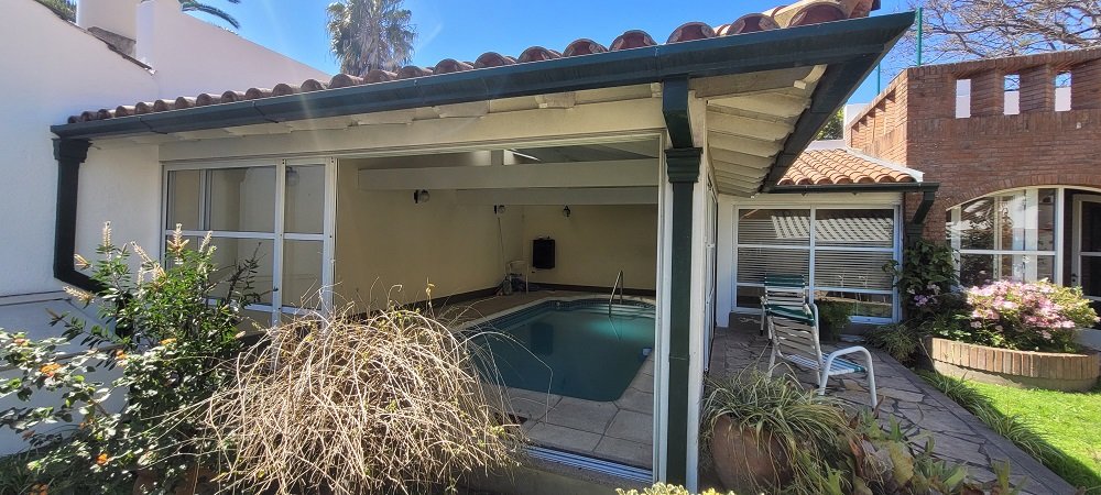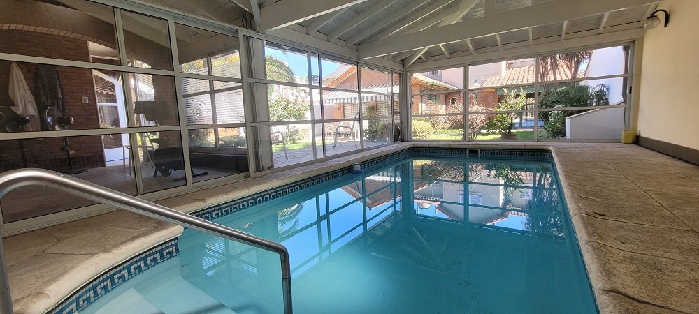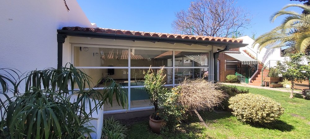 El parque: Al cual puede accederse por el garaje pasante o por el comedor diario, posee un patio con toldo rebatible, parrilla con mesada, espacio verde, piscina cubierta y climatizada con amplios ventanales corredizos que permiten una apertura total hacia el parque, espacio para gimnasio, baño completo, lavadero y cuarto de planchado y sobre este una terraza para tendido de ropa.