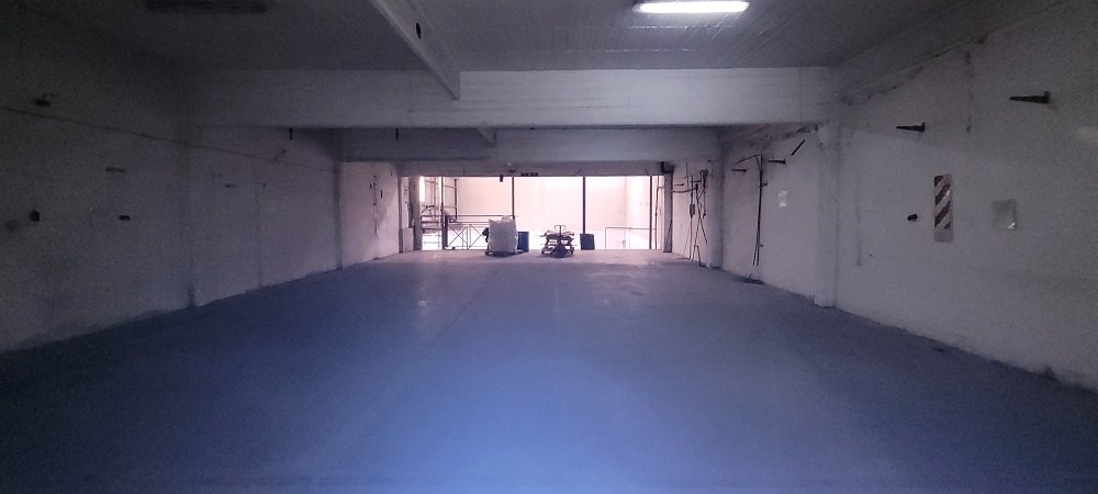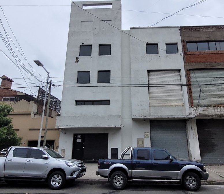 Sobre la Avenida Belgrano al 2456 acceso vehicular para carga y descarga (altura apta para contenedores). Planta libre de 470m2 cubiertos con techos parabolicos y extractores eólicos.