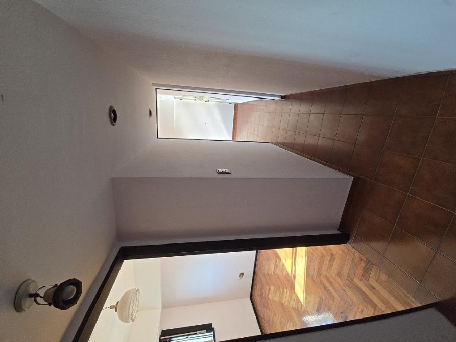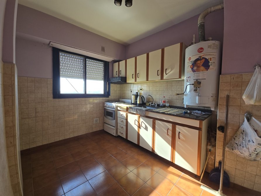 Se compone de living comedor con ventanal al frente, cocina completa, amplia, con muebles bajo y sobre mesada, termotanque y extractor, espacio para conectar lavarropas, pasillo distribuidor, dos dormitorios con pisos de madera y placard, y baño completo.