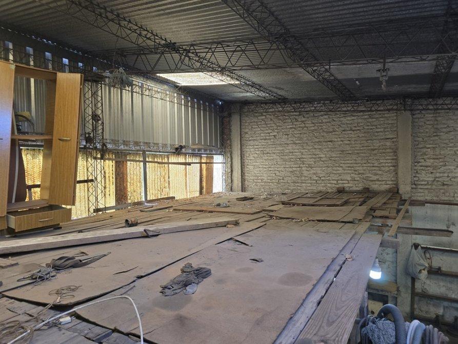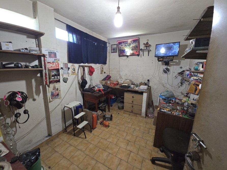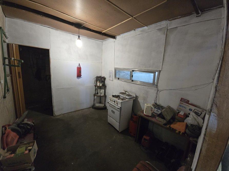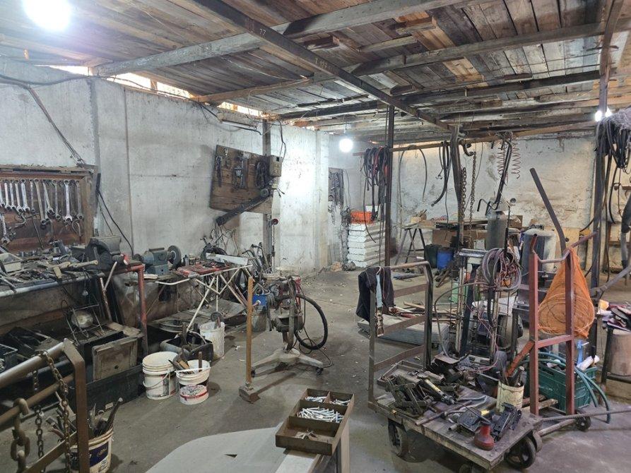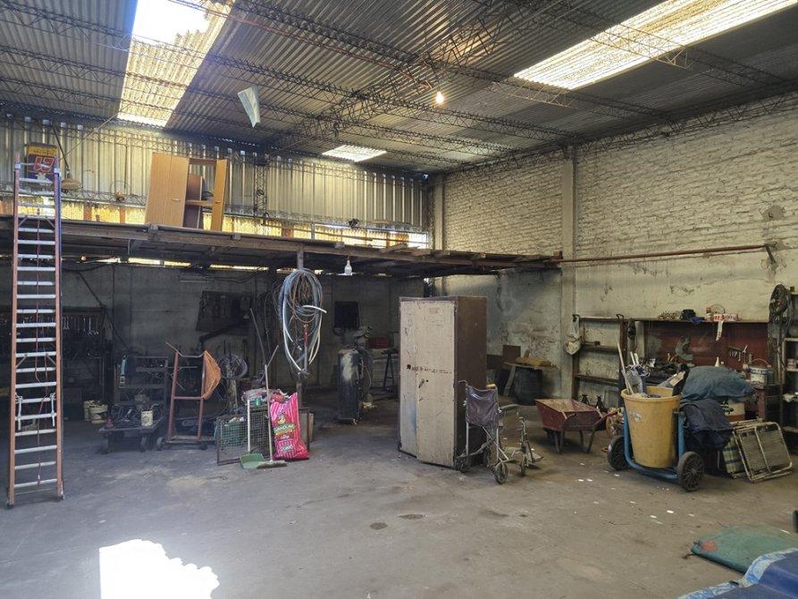 Sobre un lote en esquina con orientación Norte se encuentra construido en su totalidad, un galpón con paredes de mampostería techos de chapa a dos aguas con una altura superior a los 4 mts., pisos de cemento, posee fosa y un entre piso lateral en madera, baño completo, cocina, oficina y espacio destinado a taller.